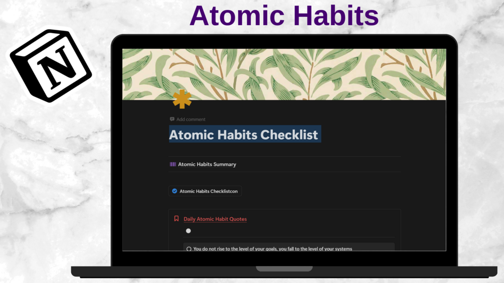 - Aligned with Atomic Habits Principles: The template reinforces Atomic Habits strategies, such as starting small, focusing on consistency, and linking habits to your desired identity.